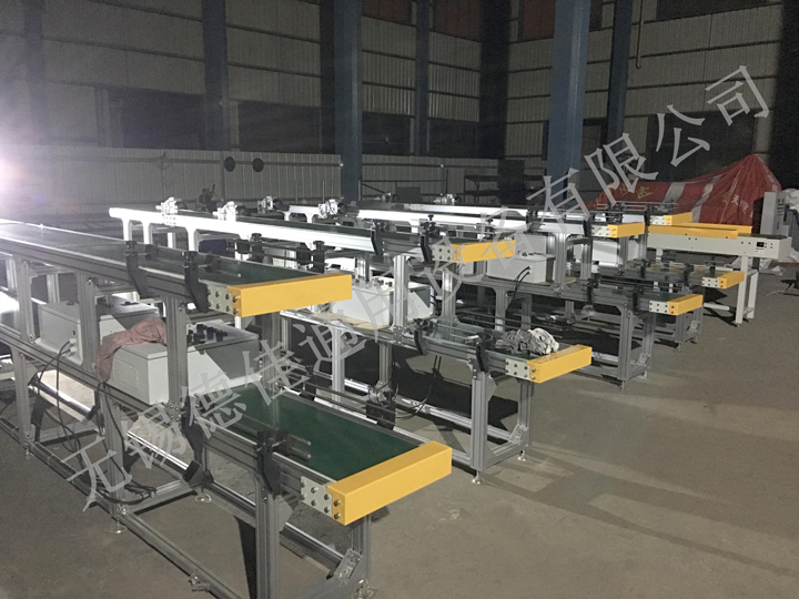 流水线运转有:输送机、皮带输送机、链板输送机、爬坡输送机以及伸缩输送机等。